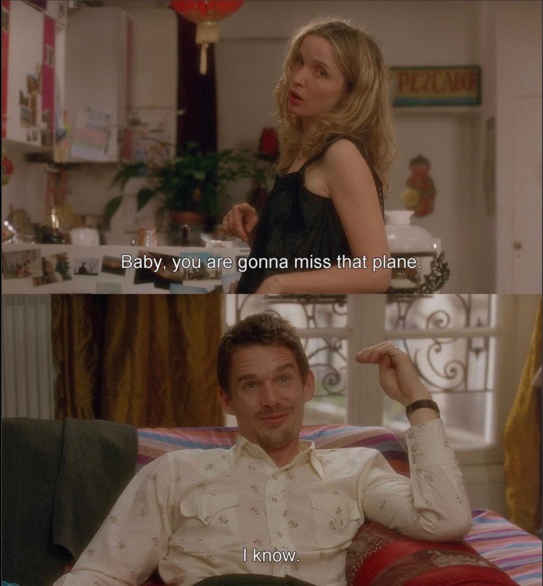 It’s not just that Before Sunset is naively optimistic, it isn’t something to aspire to. Imagine chasing a fleeting emotion you felt one night and making it some sort of raison d’être in your mind. I don’t have to imagine. I did chase it for a while and all it left me feeling was cold and disappointed. Life is not about pursuing the chemtrails of a brief dopamine high. It’s about the disappointments and mundanities. Without them we can’t appreciate the contentment the comes day by day as we make our own individual lives.